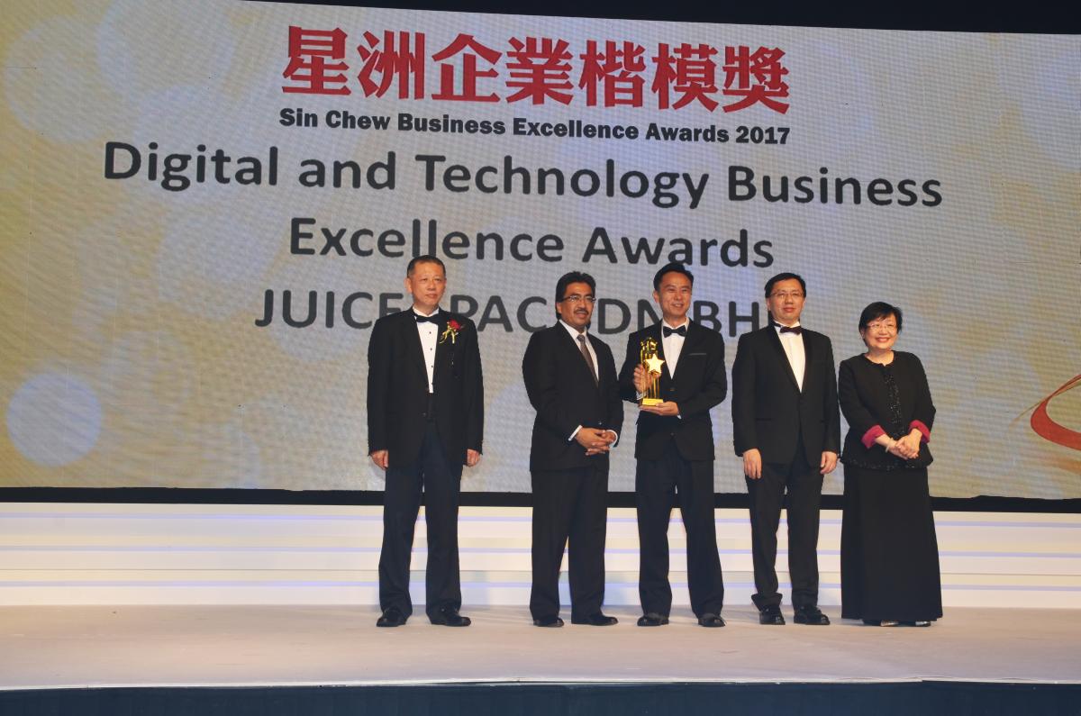 We are pleased to announce that JuiceAPac Sdn Bhd was awarded the winner of Digital and Technology Business Excellence Award at the prestigious 5th Sin Chew Business Excellence Business Awards 2017 held recently at the Setia City Convention Centre, Shah Alam. The award was presented by the Minister of Finance II; YB Datuk Seri Johari Bin Abdul Ghani.