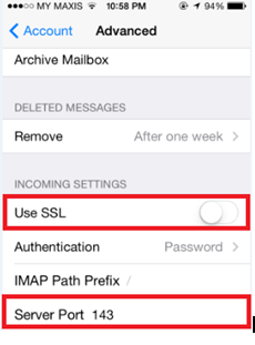 - Goto Advanced tab, under Outgoing server (SMTP), change the port 25 to your new assigned port.